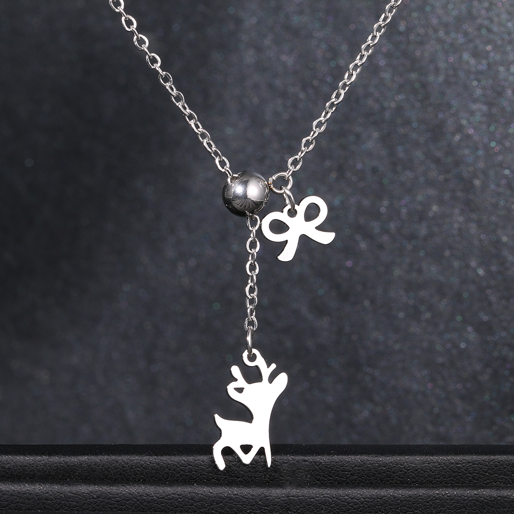 Stainless Steel Necklaces Elk Bow Bells Pendants Aesthetics Choker Chain Necklace For Women Jewelry Christmas Party Gift Silver-45cm – Sumsfashion